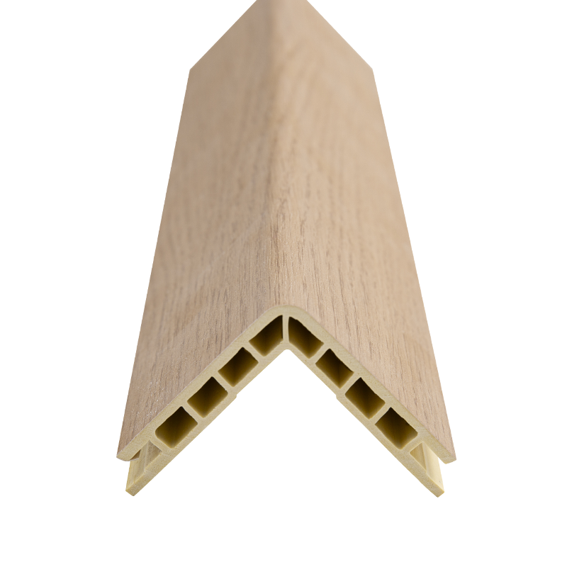 La moulure d'angle externe de 50 mm est fabriquée à partir d'une base composite de farine de bois, de poudre de calcium et de matériaux polymères, et est formée par pressage à chaud à haute température. D'une largeur de 50 mm et d'une structure standard en forme de L, il est spécialement conçu pour relier les coins extérieurs aux panneaux muraux. Il protège non seulement le coin extérieur mais résout également le problème de transition entre le panneau mural et le coin extérieur, ce qui en fait un composant à double fonction pour la « connexion de protection » dans la décoration. Les principaux arguments de vente correspondent précisément à la demande : le matériau de base composite est pressé à chaud à haute température, créant une structure serrée qui est plus résistante aux chocs et à la déformation qu'un matériau unique, et est moins susceptible d'être endommagée par les mouvements ou les frottements quotidiens des meubles. La structure en forme de L s'adapte parfaitement aux panneaux muraux, non seulement enveloppant les coins extérieurs pour une protection complète, mais dissimulant également le joint entre les panneaux muraux et les coins extérieurs, créant ainsi une surface murale plus propre et plus ordonnée. La combinaison de poudre de bois et de matériaux polymères le rend résistant à la moisissure et à l'humidité, résistant aux éclaboussures d'eau ou aux changements d'humidité et conservant son apparence même après une utilisation à long terme. La surface peut être personnalisée en plusieurs couleurs, s'adaptant à des styles tels que le minimaliste moderne et le néo-chinois, complétant la palette de couleurs du panneau mural sans perturber l'aspect général. La largeur de 50 mm de la moulure d'angle extérieur offre une zone de protection plus grande que les largeurs plus étroites, offrant ainsi une protection plus complète pour les coins extérieurs.